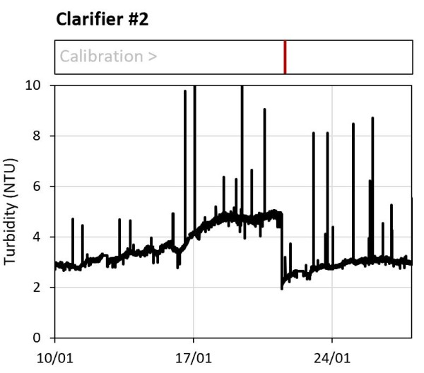 How many times have you seen poorly scaled graphs that obfuscate the data? Here are a few examples of poorly scaled graphs with potential alternatives. In this first example the graph has been set to the instrument scale. The spikes up to 1,000 NTU aren’t adding any value. A simple re-scale shows the data, without losing any important detail.