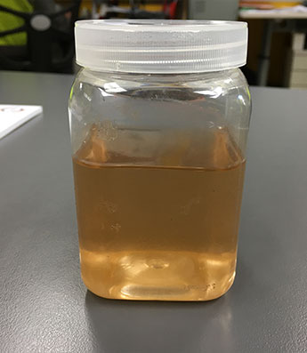 Collect as much information as possible from each customer who complains. What was the water like? Was it cleared by flushing? How long did it last? Were there any odours? Had the customer been absent from the property for an extended time before using the water? Check neighbouring properties. Did they have issues? If the water is still discoloured when responding, take a sample and get it tested for manganese, iron, FAC and heterotrophic plate counts (HPC).