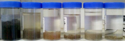 On the left is a manganese staining of pipe, on the right are biofilm samples with absorbed manganese.